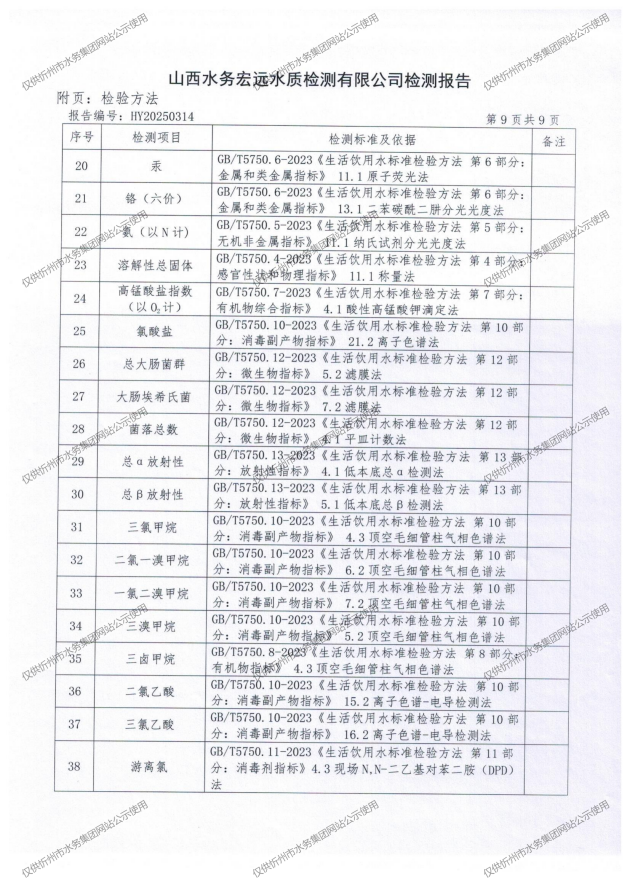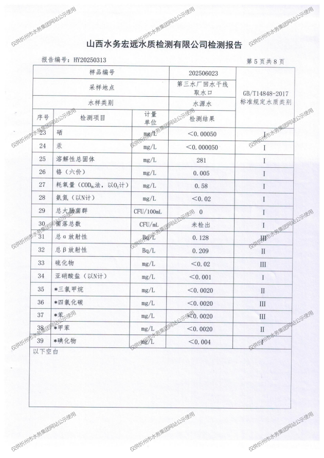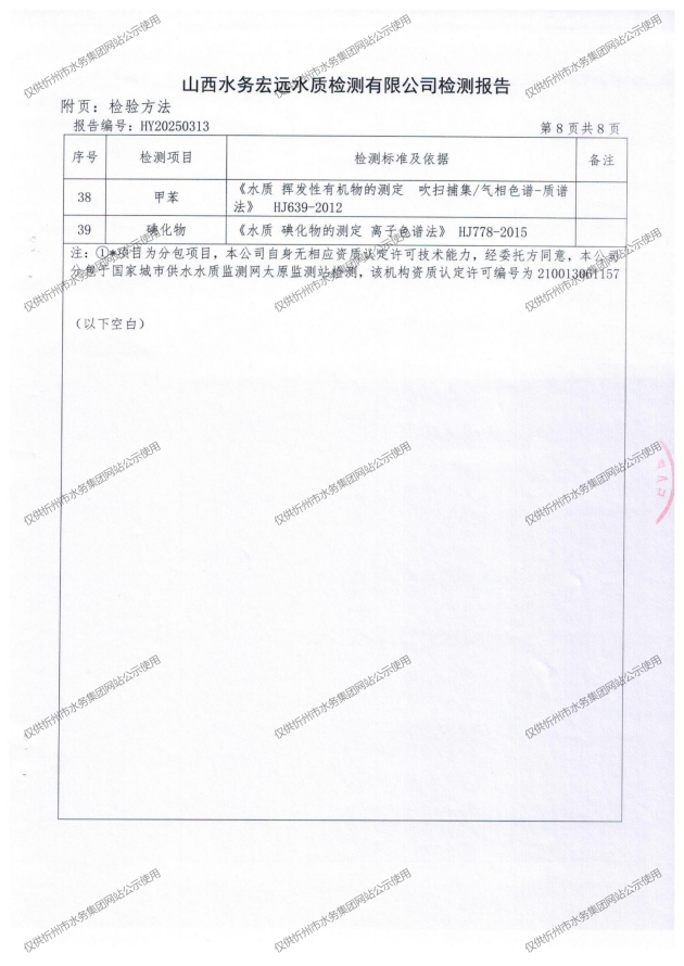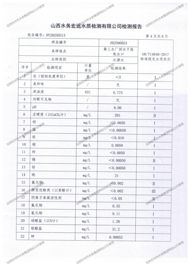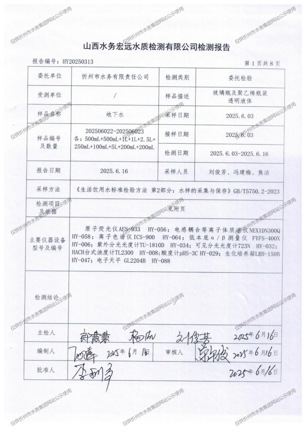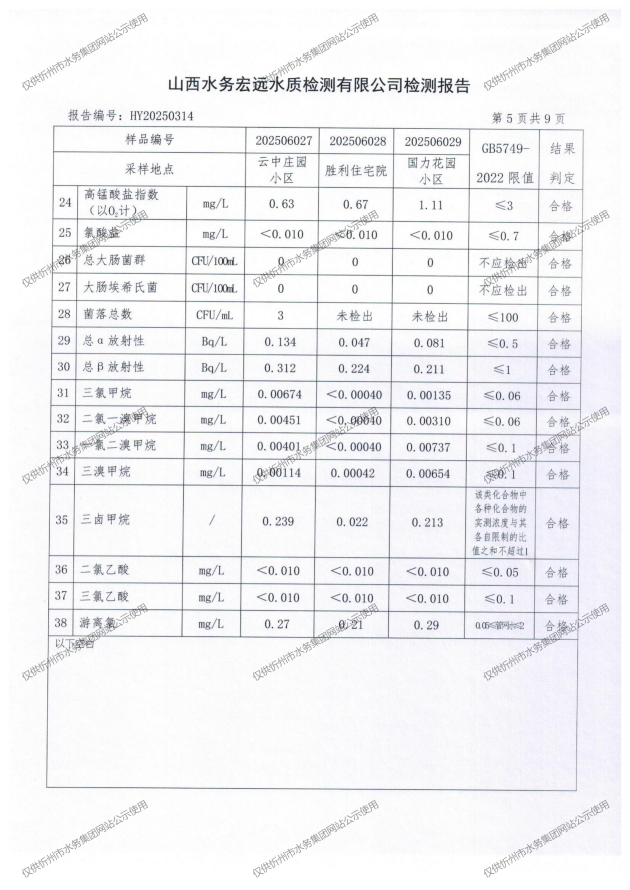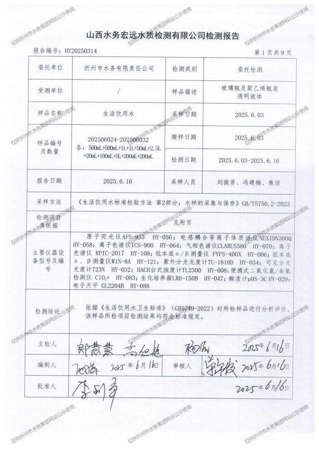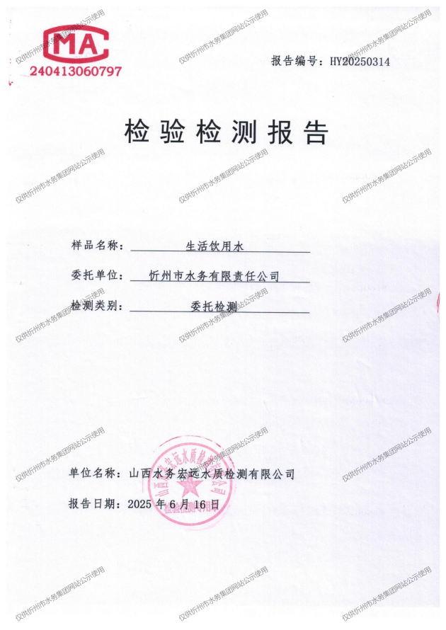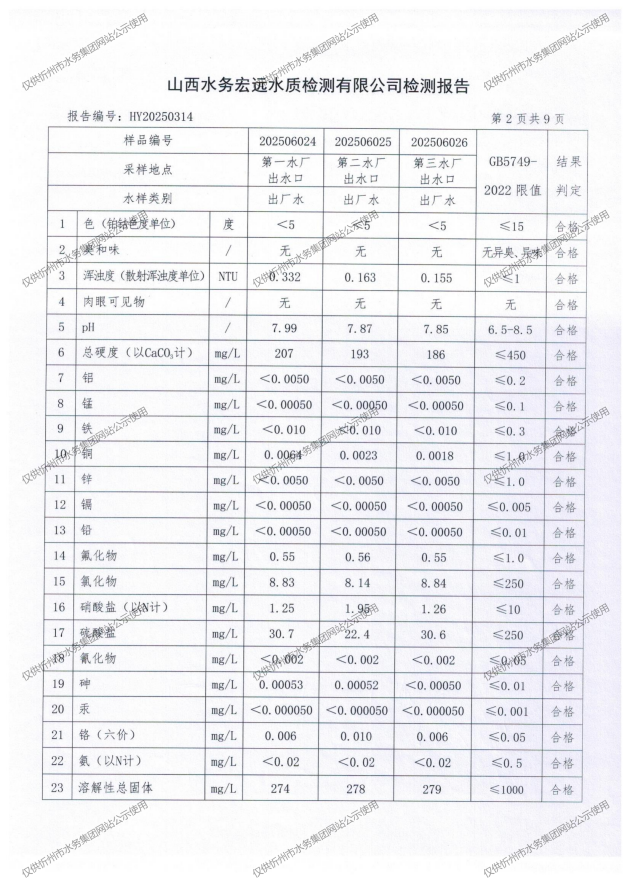 忻州城區(qū)公共供水水源水、出廠(chǎng)水、管網(wǎng)水、管網(wǎng)末梢水2025年6月份水質(zhì)信息公示