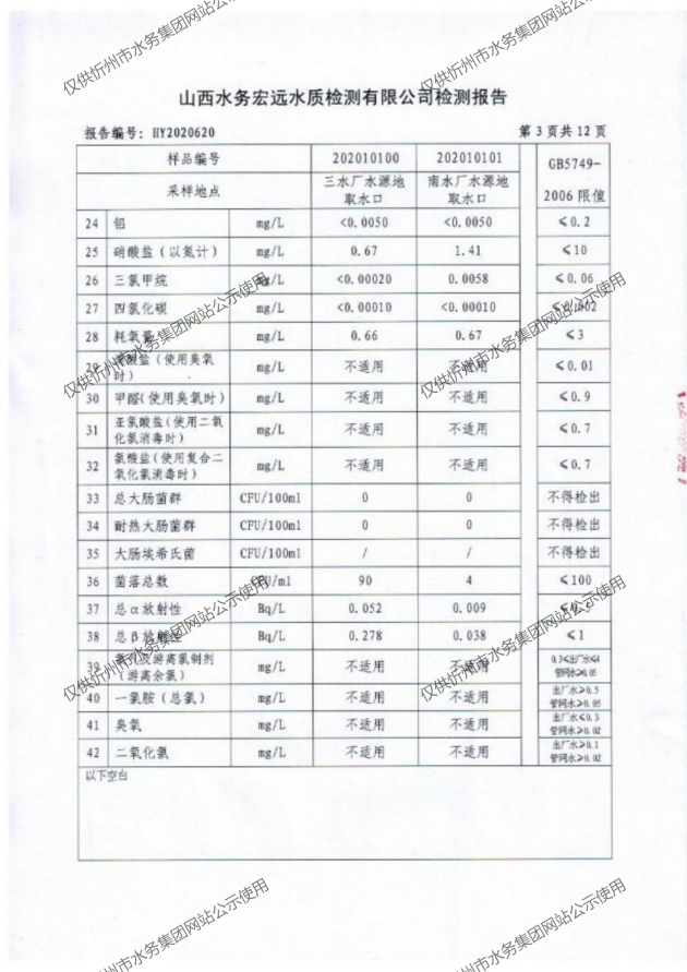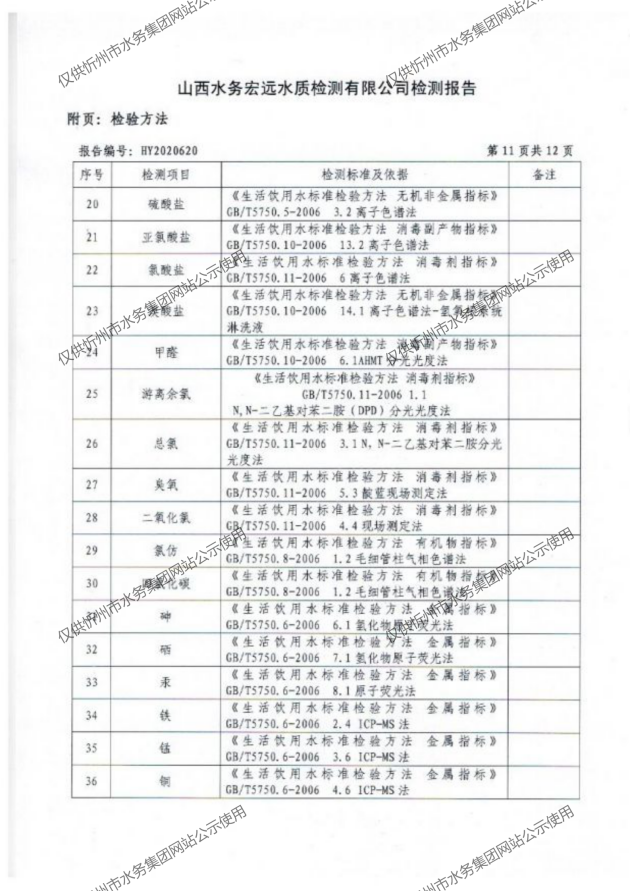 忻州城區(qū)公共供水水源水、出廠水、管網(wǎng)水、管網(wǎng)末梢水2020年10月份水質(zhì)信息公示