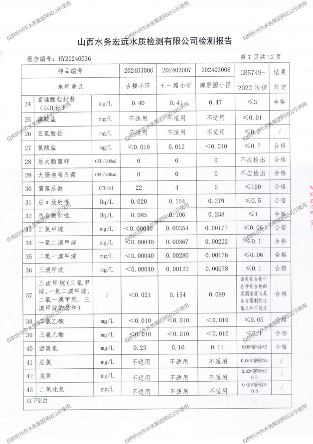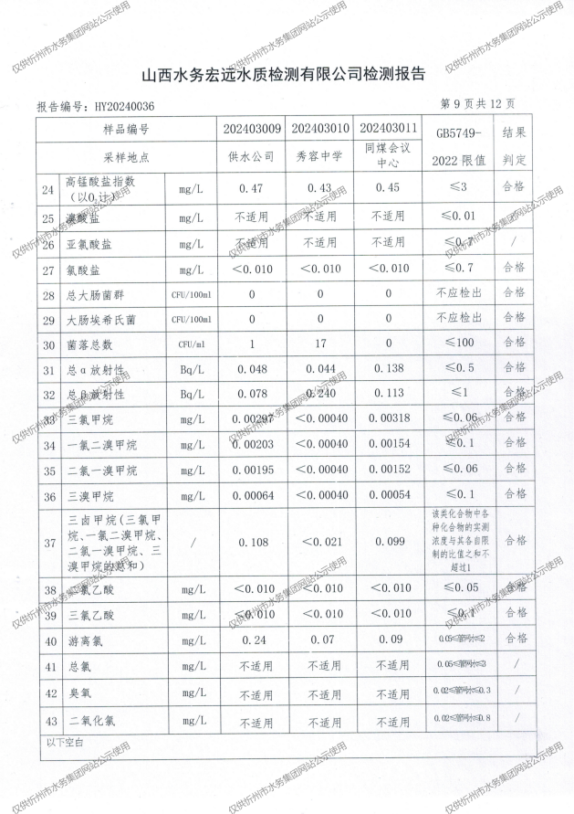 忻州城區(qū)公共供水水源水、出廠(chǎng)水、管網(wǎng)水、管網(wǎng)末梢水2024年3月份水質(zhì)信息公示